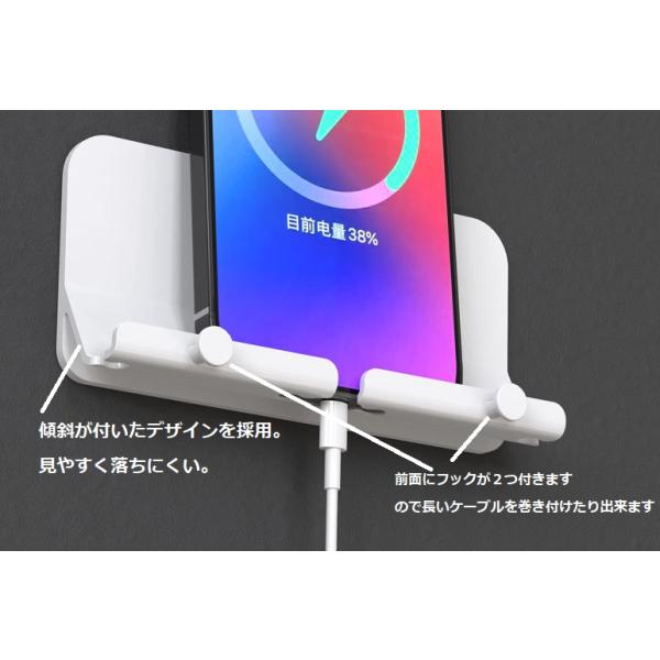 壁掛け ちょい置き スマホスタンド 携帯 充電ホルダー 粘着テープ式 収納 台 省スペース ホルダー dar-sumaoki