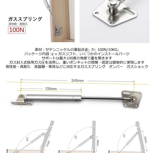 ※取り付けのサポート及び説明書等はございません。※よくあるお問い合わせと致しまして、100N(10kb)タイプは加重が固く設定されている為、取り付けしていない状態で商品のみを手で縮めようとする場合、相当な力が必要となりますが、不具合ではございません。
