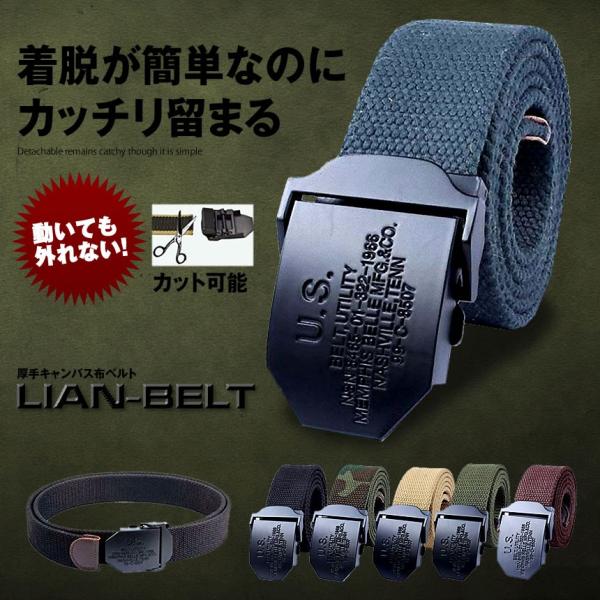 外れない 布ベルト カジュアル ブラック バックル ミリタリー 厚手 キャンバス ガチャベルト タクティカル 耐久性 tecc-milibelt ブラック