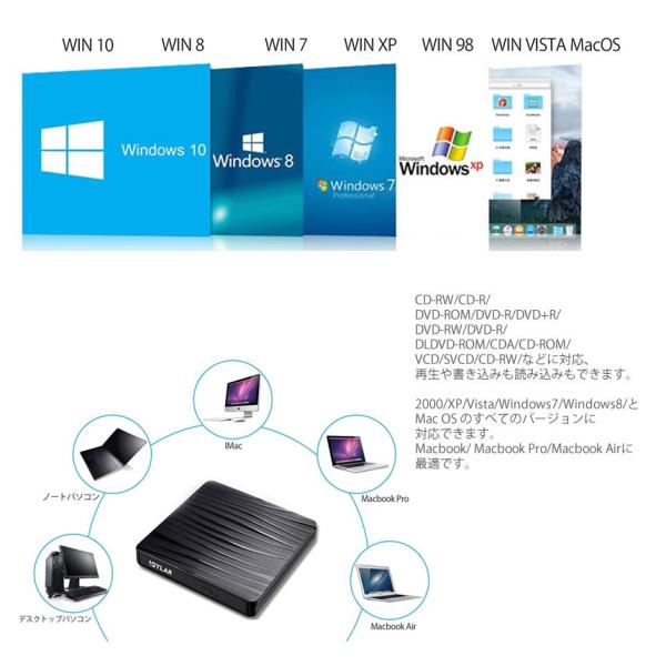 外付け DVD ドライブ CD DVD プレイヤー USB3.0&Type-c 読取 書込 Windows10/11 MacOS 対応 薄型 軽量 type10 tecc-tyc-drv[送料無料]