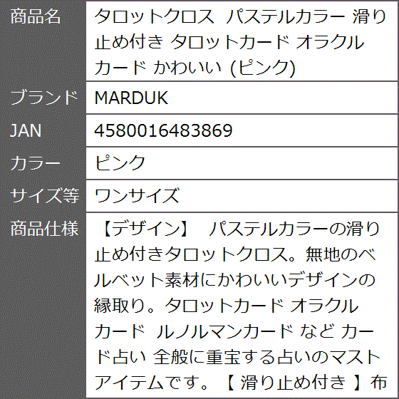 タロットクロス パステルカラー 滑り止め付き タロットカード オラクルカード かわいい( ピンク, ワンサイズ)