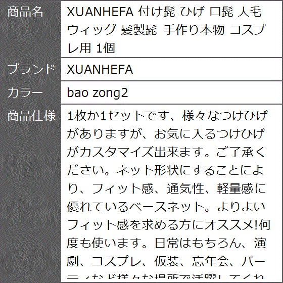 XUANHEFA 付け髭 ひげ 口髭 人毛 ウィッグ