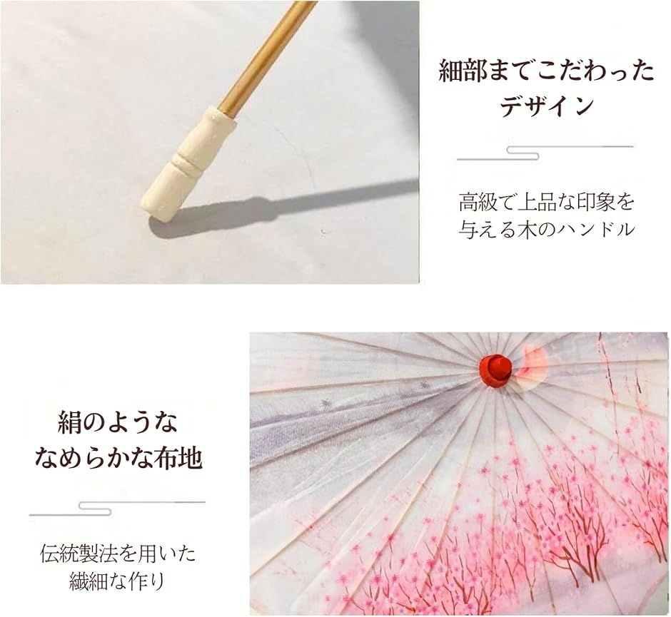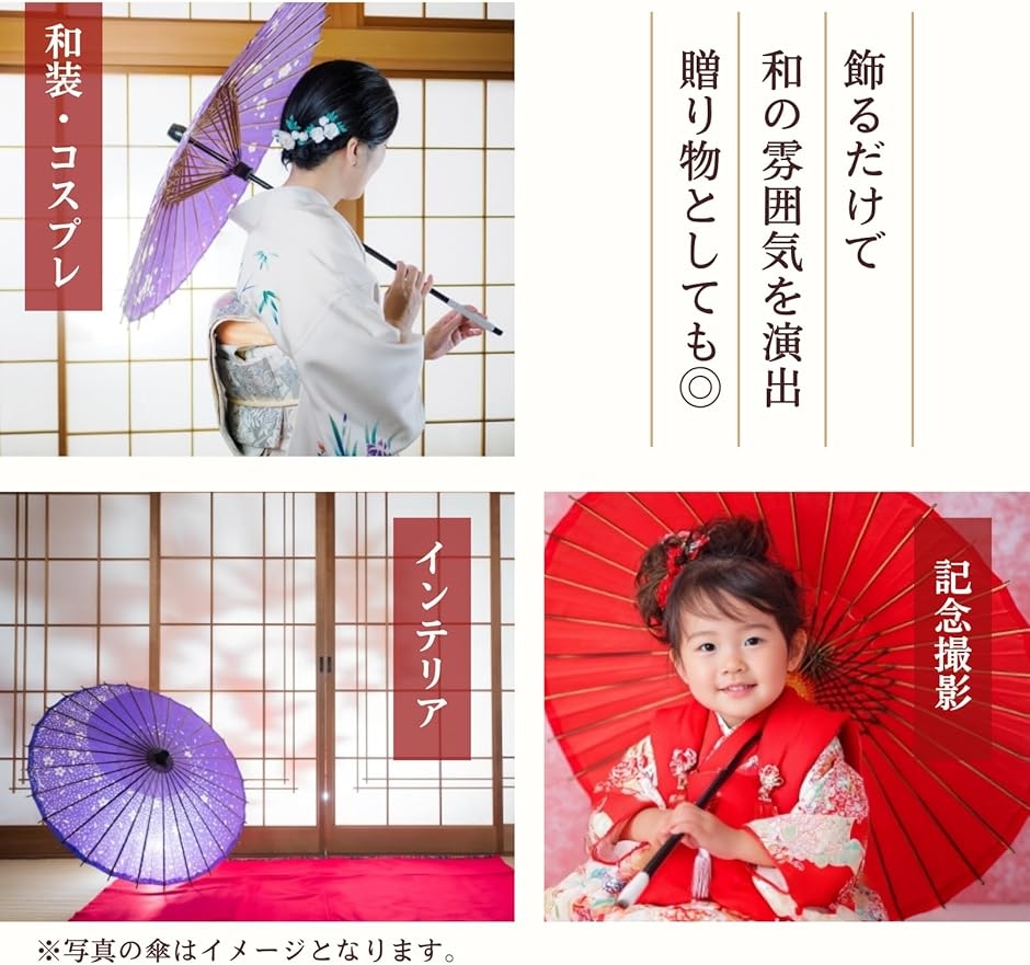 浴衣や着物との相性がよく、特別なシーンを華やかに彩ってくれる和傘です。