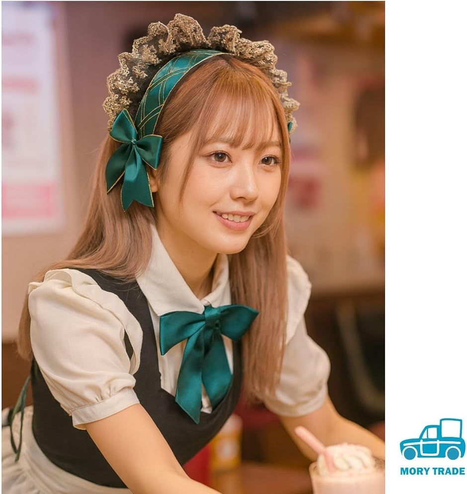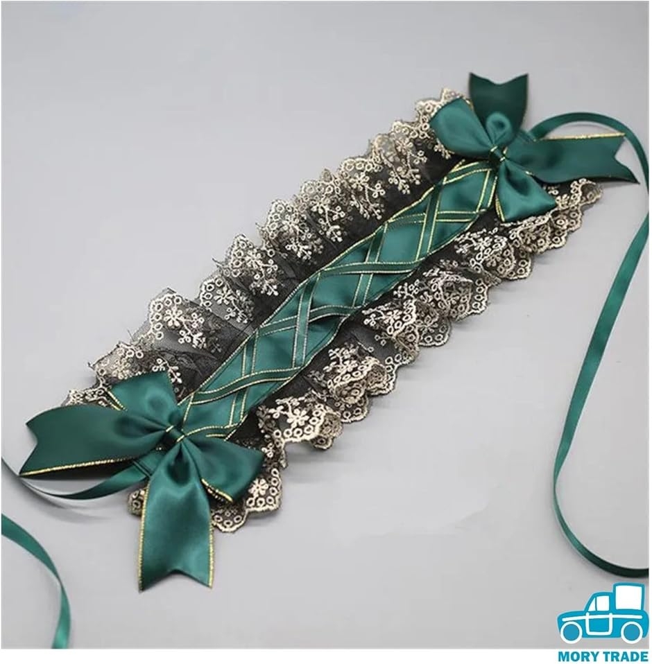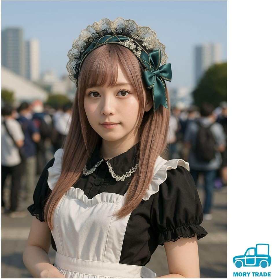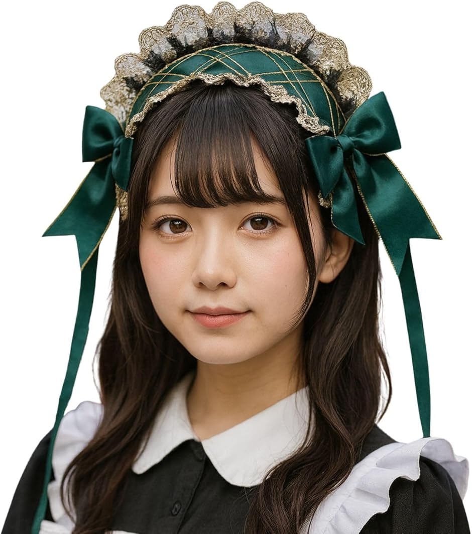 morytrade ゴシック ヘッドドレス レース リボン付き 髪飾り ビター系 ロリータ風 黒 ネイビー ハロウィン (ダークグリーン)