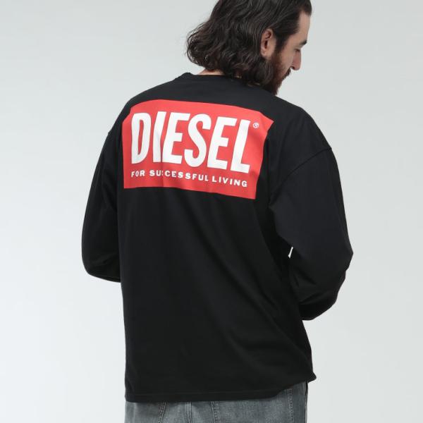 ディーゼル ロンT メンズ DIESEL ロゴ バックBOXロゴ プリント クルーネック 長袖 コットン Tシャツ DSA200370EPCA ブランド トップス ブラック