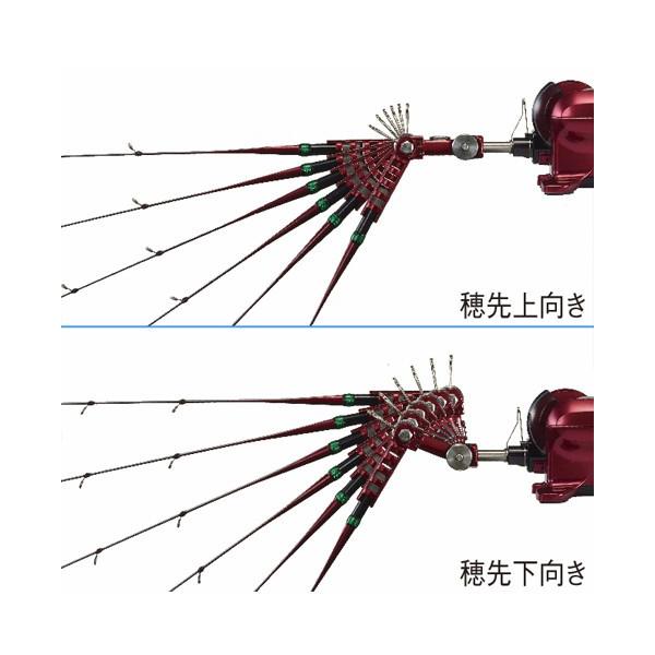 穂先を上向きで使う場合は、上部のワイヤーガイドを利用し、下向きで使う場合は2つのナットで角度をつけて、中央部のセラミックガイドにラインを通して使用します。自在に使える優れもの「レイクマスター 角度チェンジャーリバーシブル」をお試しください。