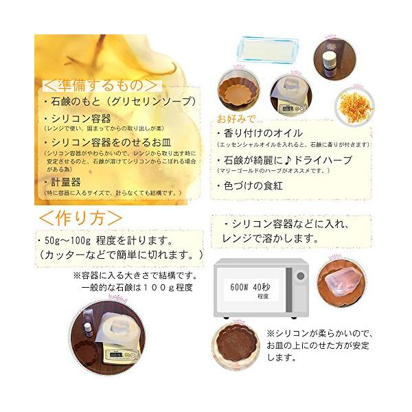 この商品は石鹸素地の雑貨です。 (別途、型などの道具を用意) <成分>