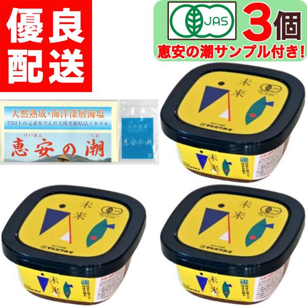 美味しいお塩のサンプル付き マルカワみそ 有機みそ 未来 400g × 3個 有機味噌 自然栽培 木桶仕込み 有機JAS認証 無添加 天然醸造 越前 お味噌 まるかわ みそ