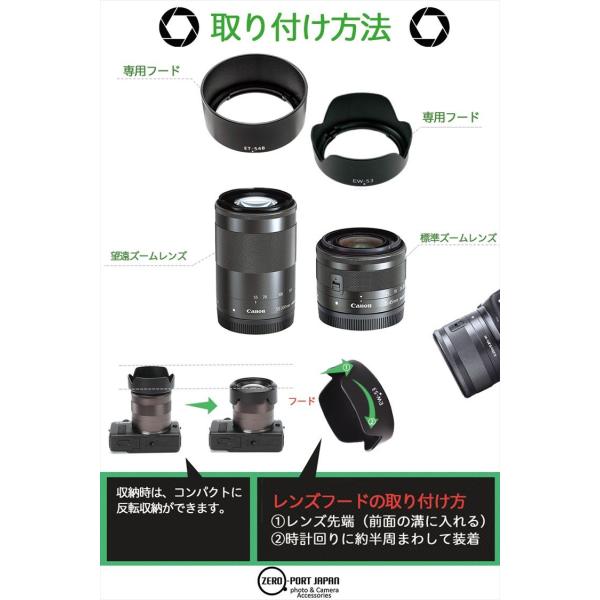 Canon キヤノン EOS Kiss M EOS M100 EOS M10 EOS M6 ダブルズームキット 適合 レンズフード EW-53 ET-54B 2点セット 互換フード