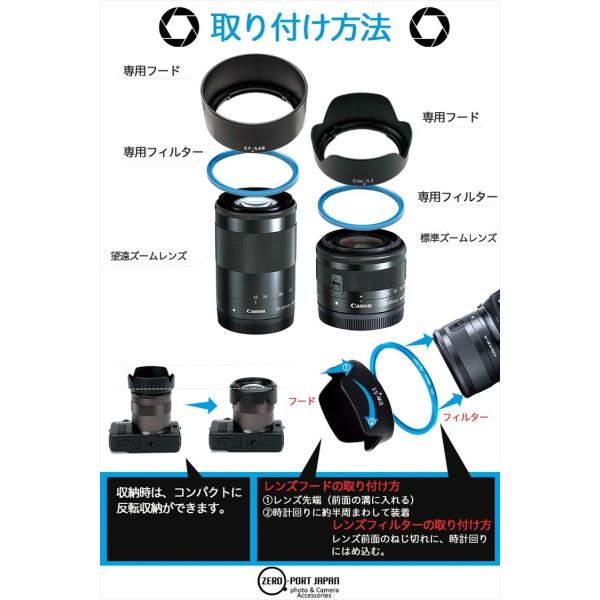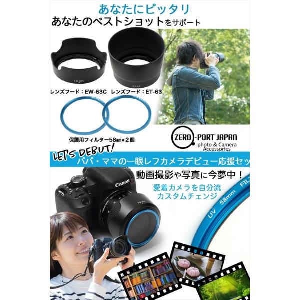 ・Canon EOS Kiss X10i X10 X9i X9 X8i X7i ダブルズームレンズキットに同梱されているレンズ2本に装着できるレンズフード(EW-63C,ET-63)2個とフィルター(58mm)2枚の4点セットです。 純正品ではございません。