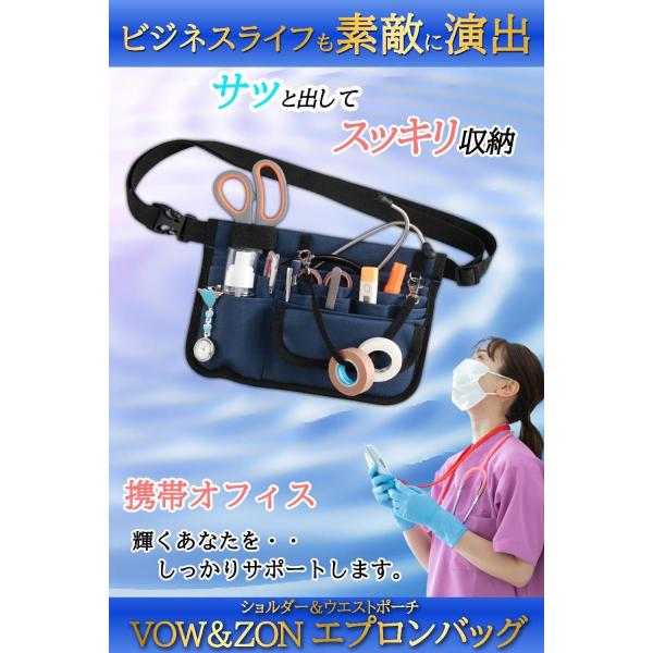 ナースポーチ ナースバッグ エプロンバッグ 作業ポーチ 仕事用 ウエストポーチ (介護士 看護師 飲食業スタッフ用) 斜め掛け ショルダーベルト