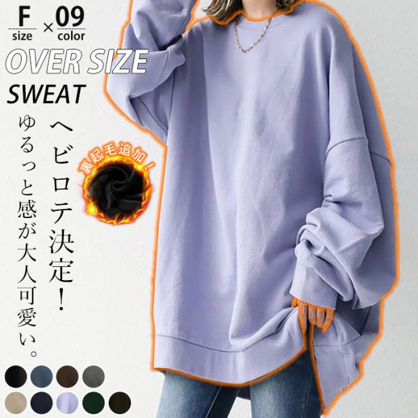 <二点目⇒2,850円>トレーナー 裏起毛 暖かい スウェット プルオーバー レディース ロング丈 長袖 大きいサイズ 春冬 トップス ゆったり 韓国風