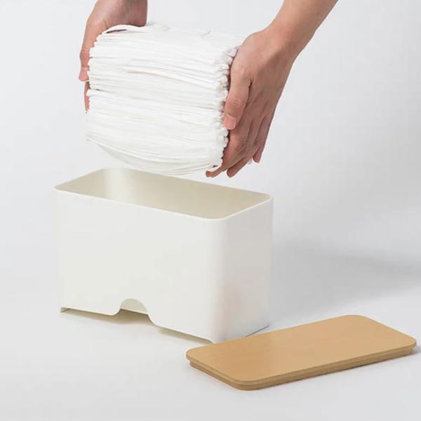 シンプルデザインでオシャレなマスクケースボックス。一般的な不織布マスクを50枚収納出来て、ボックスの下から1枚ずつ取り出せる、便利なマスクケースボックスです。