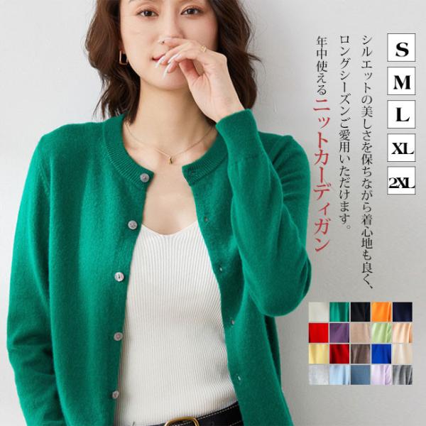 カーディガン クルーネック Uネック 長袖 レディース 春冬 トップス ニット ショート丈ニット 羽織り UVカーディガン 洗えるニットカーディガン