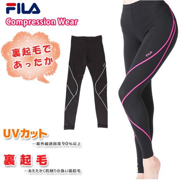 【ネコポスもOK】秋冬 裏起毛 スポーツレギンス コンプレッション 【FILA(フィラ)】 レディース ランニング 女性 M/L/LL