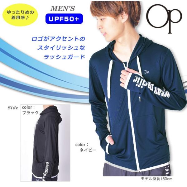 【ネコポスもOK】ラッシュガード メンズ 長袖 パーカー ジップアップ 男性用 M/L/XL 【ocean pacific】