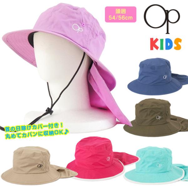 帽子 サーフハット キッズ UVカット 男の子 女の子 UPF50+ ビーチハット【OP(オーシャンパシフィック)】 子供用 日除けカバー 折りたたみ ひも付き UVカット