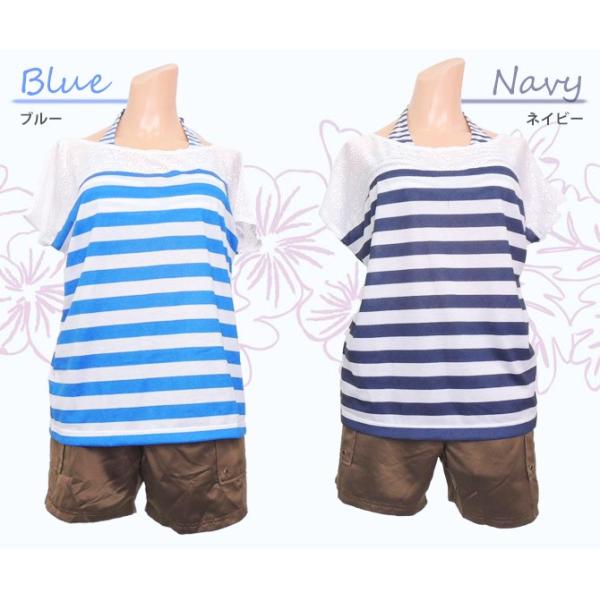 【送料無料】水着 レディース 体型カバー 20代 30代 40代 ボーダー柄 ビキニ 大きいサイズ 半袖 女性 15号/17号/19号