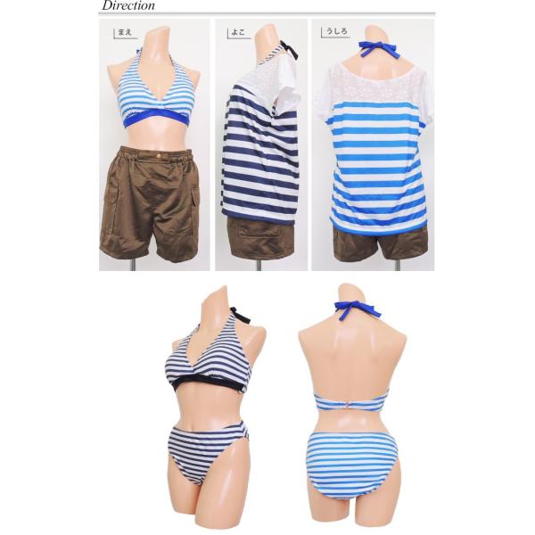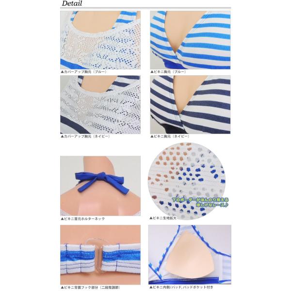 人気のレースにボーダー柄♪エレガントで爽やかなラクちん4点セット水着です。