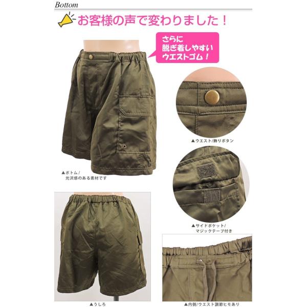 ボトムはカーゴタイプのショートパンツですが、子どもっぽくならない光沢感のある上品な素材を使用。