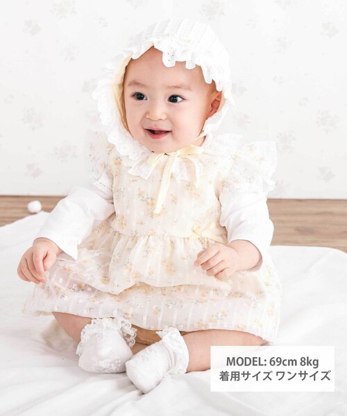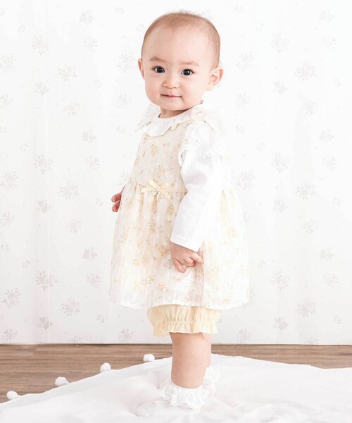 商品名:花柄シフォンレースワンピース+フリルブルマセットアップベビー(70~80cm)