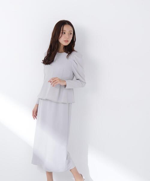 ワンピース ラインパールペプラムワンピース