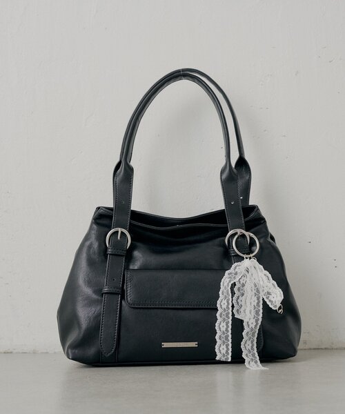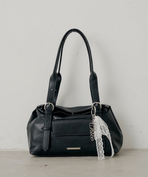 商品名:チャーム付き横長ベルトハンドルバッグ