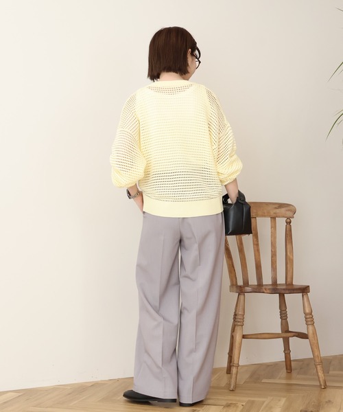 キーワード:パンツ レディース ストレート ハイウエスト フルレングス ワイドパンツ 無地