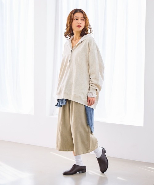 素材:ベージュ55:綿100% インディゴ87:綿37% ポリエステル26% レーヨン25% 再生繊 (セルロース)4% アクリル3% ポリウレタン2% ナイロン2% 麻1%