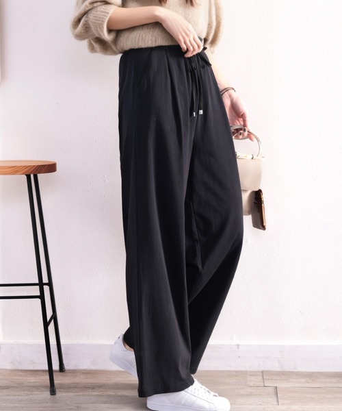 キーワード:パンツ レディース ウエストゴム ストレート ストレッチ フルレングス レギュラー ワイドパンツ 無地 WEB限定 デート ピクニック レジャー プチプラ ベーシック 夏 公園 春 大人カジュアル 定番