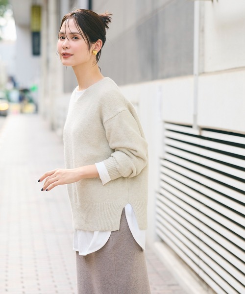 キーワード:ニット セーター レディース vネック 長袖 無地 ドライブ ノームコア ピクニック レジャー プチプラ 大人カジュアル 冬 旅行