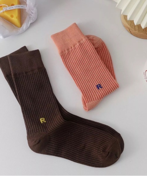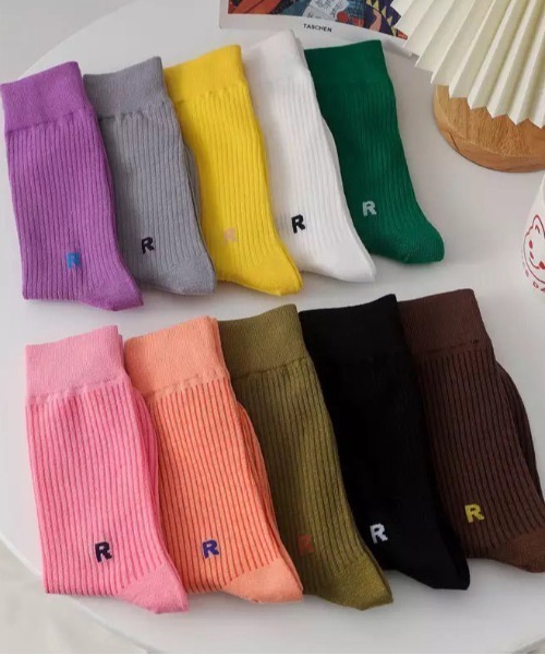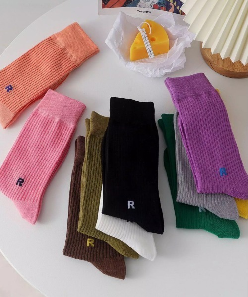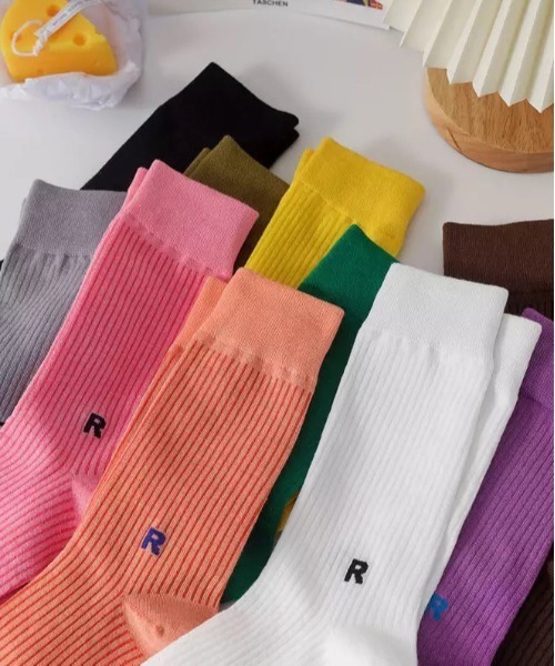 商品名:【 ammy. / エイミードット 】 ワンポイント アルファベット ロゴ カラー ソックス