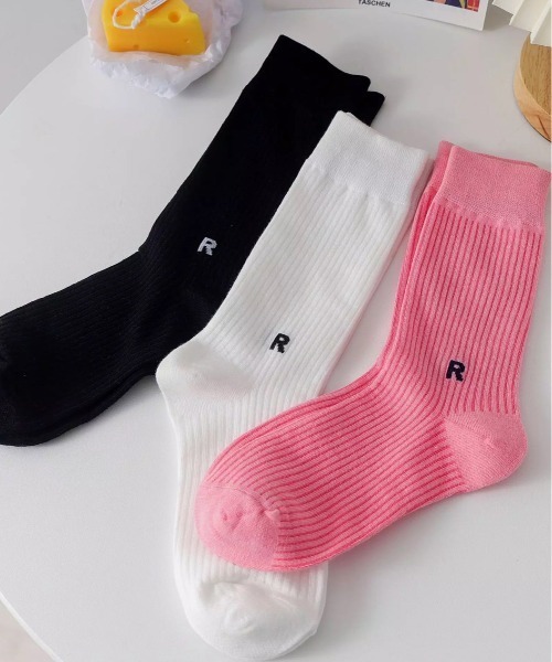 靴下 「 ammy. / エイミードット 」 ワンポイント アルファベット ロゴ カラー ソックス レディース