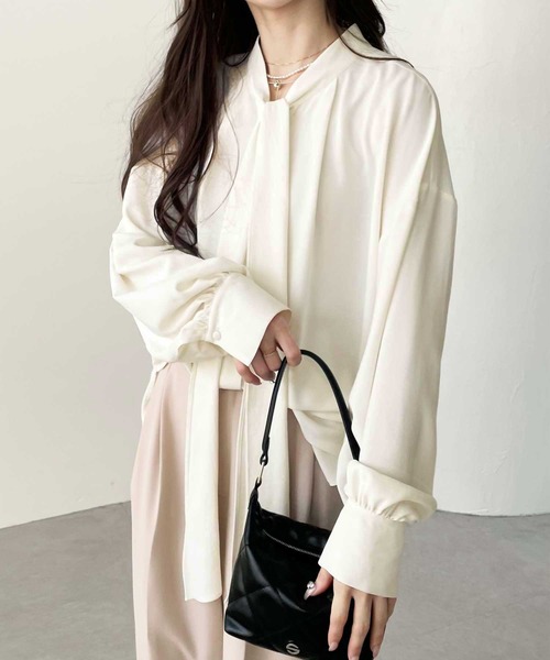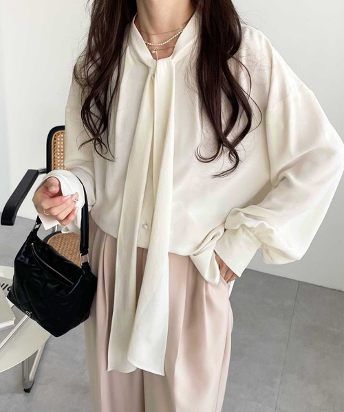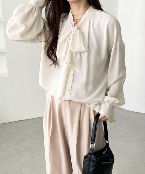 キーワード:ブラウス シャツ レディース ドット ボウタイ リボン 長袖 無地 WEB限定 大人カジュアル