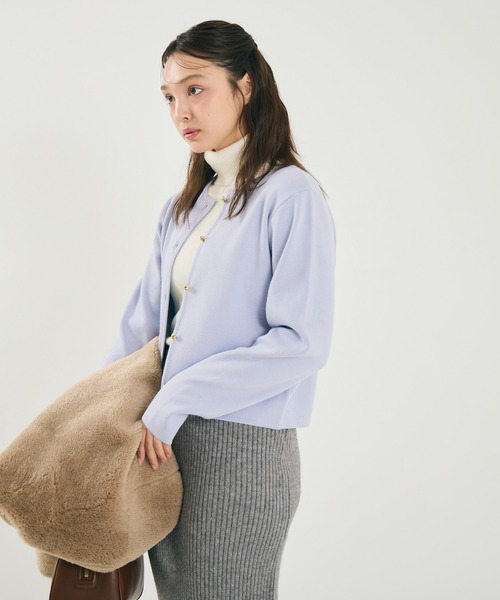 カーディガン 配色で差がつくベーシックな一枚。Wフェイス配色ニットカーディガン レディース