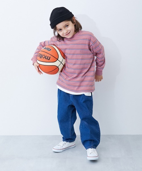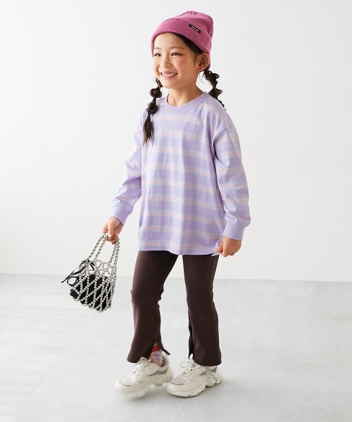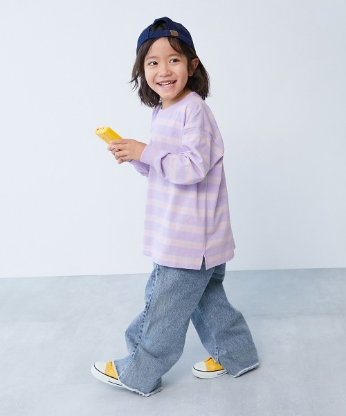 キーワード:tシャツ キッズ 子供服 男の子 女の子 クルーネック ボーダー ロング丈 長袖 公園 春 保育園