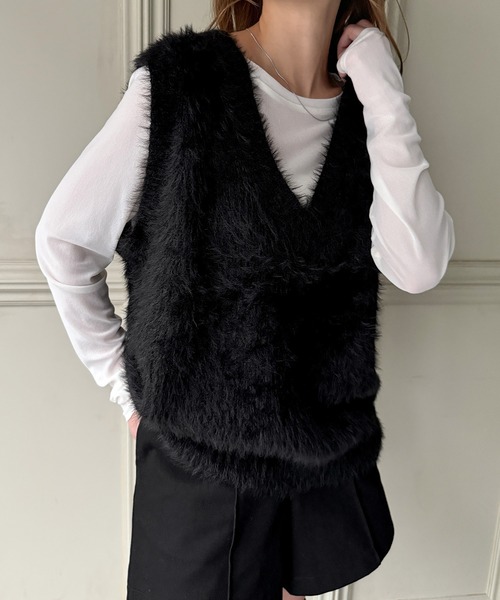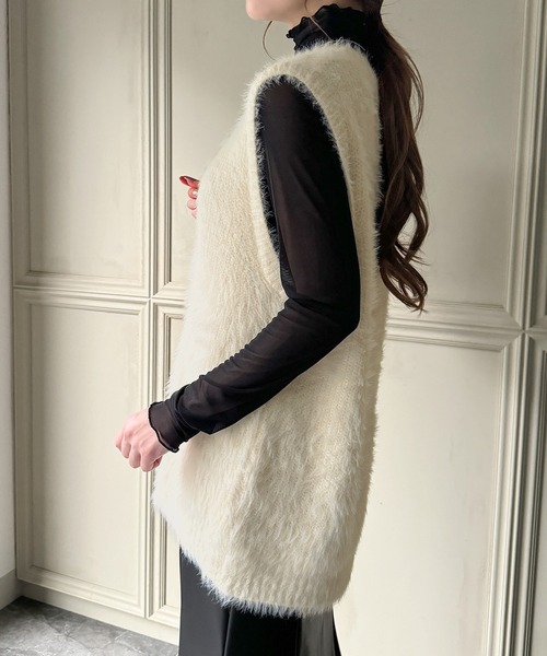 ベスト ジレ フェザーVネックベスト レディース