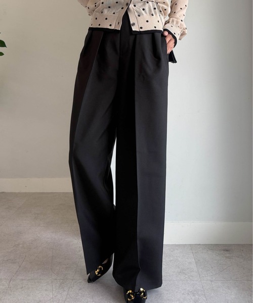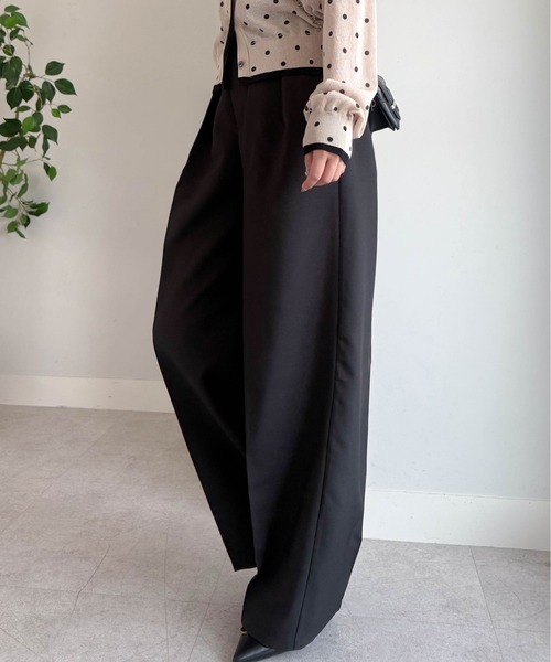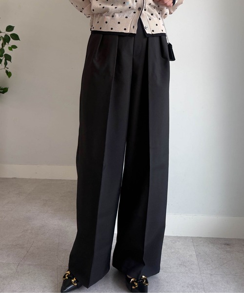 スラックス パンツ 「低身長/高身長/大きいサイズ有」2タックワイドスラックス レディース