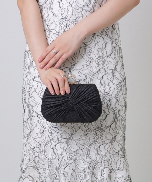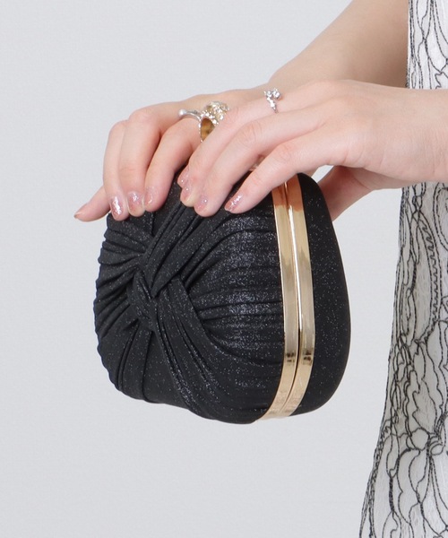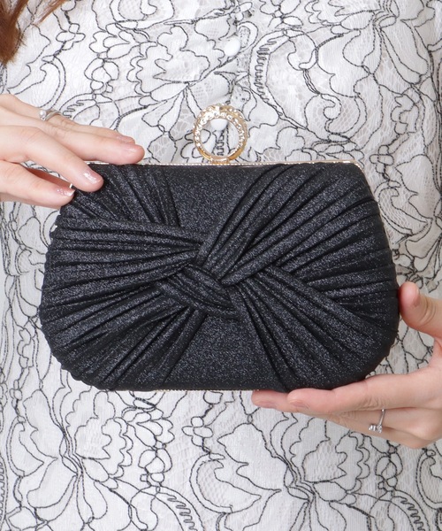 クラッチバッグ パーティーバッグ ビジューリング付き ラメ ギャザー 2WAY コンパクト バッグ レディース