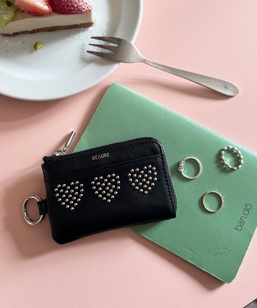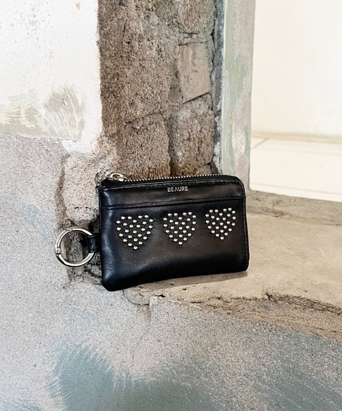 財布 「BEAURE」カウレザー ハートスタッズマルチフラグメントケース B-24027 レディース