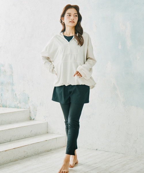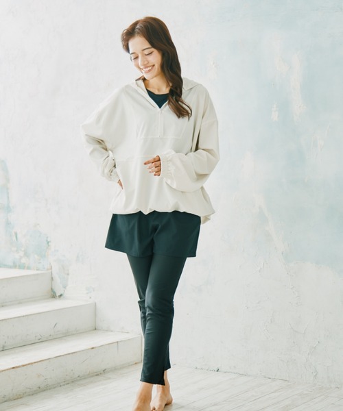 商品名:せここさんご紹介商品【紫外線防止】【UVカット】【WEB限定商品】ポケット付きハーフジップラッシュパーカー+リブタンキニ水着+レギンス5点セット【Beach Queen(ビーチクイーン)】