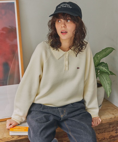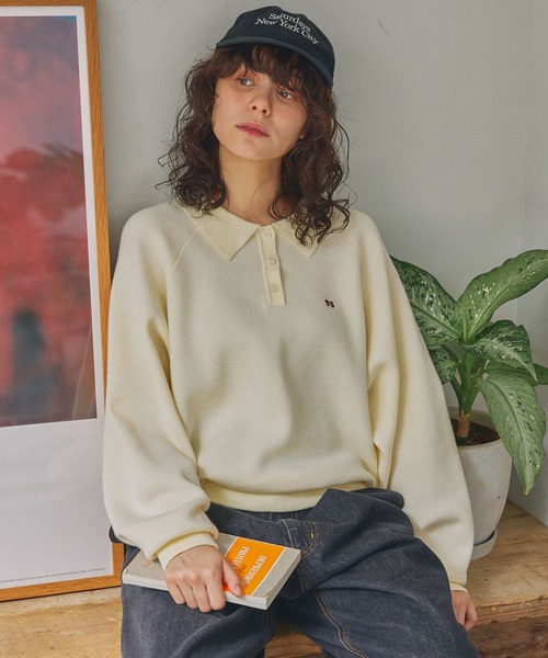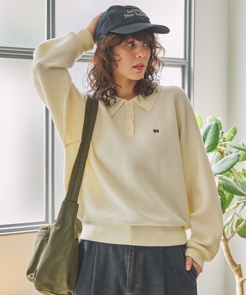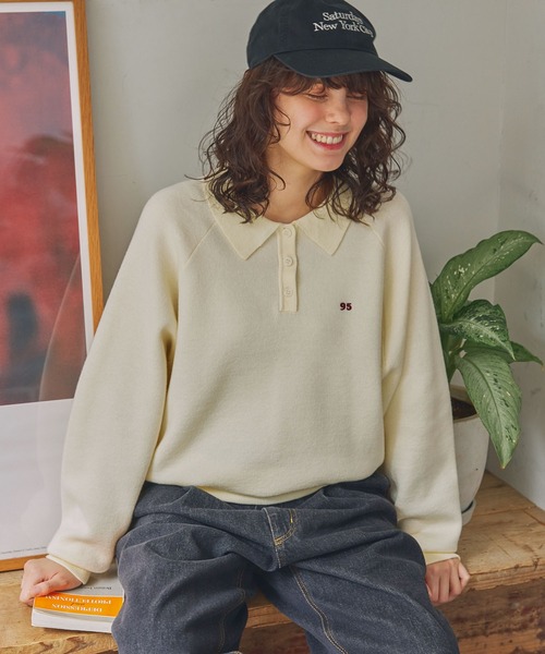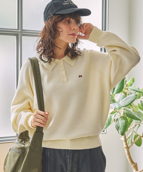 商品名:ナンバリング刺繍 スウェットライク ポロニット