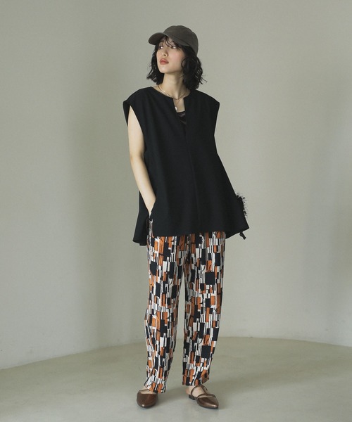 パンツ 柄イージーパンツV(テーパード) レディース