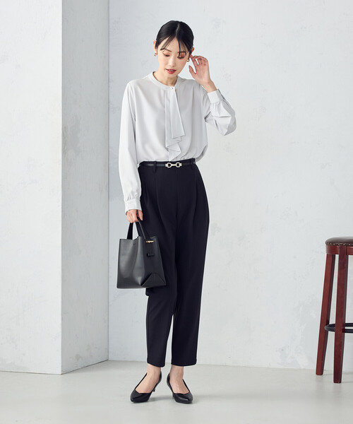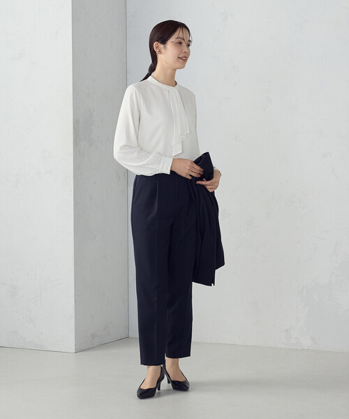 キーワード:ブラウス シャツ レディース ボウタイ 長袖 無地 オフィスカジュアル キレイめ ビジネス 卒業式 入学式