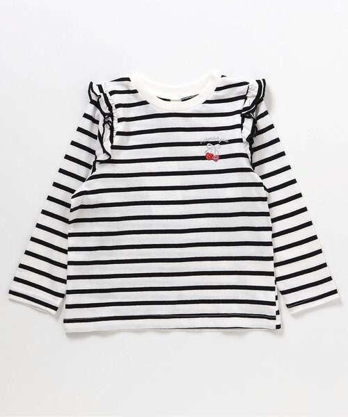 キーワード:tシャツ キッズ 子供服 女の子 クルーネック フリル ボーダー 花柄 長袖 ナチュラル ベーシック 公園 秋 新生活