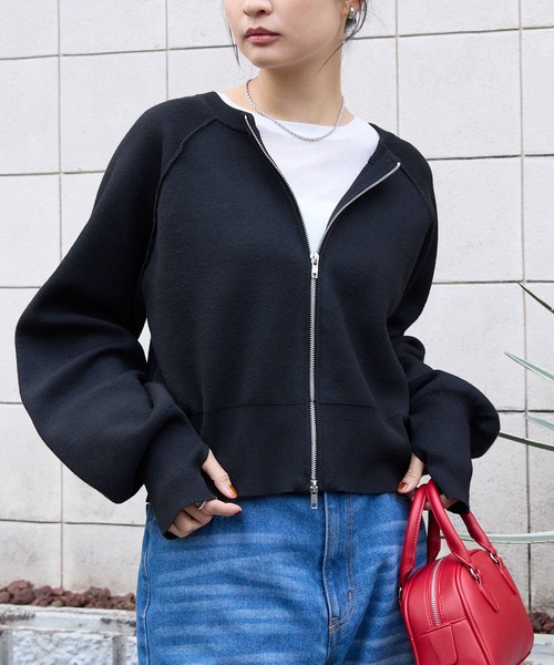 カーディガン 前後2WAY|ダブルジップ ショートカーデ(スウェットライク) レディース