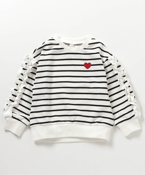 キーワード:トレーナー キッズ 子供服 女の子 ドット パイル フリル ボーダー ワンポイント 長袖 無地 WEB限定 ナチュラル フェミニン ベーシック 公園 秋 新生活 定番 保育園