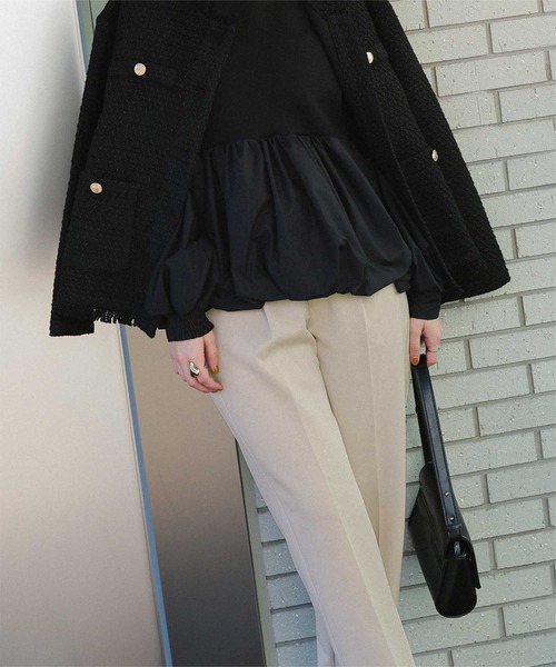 パーカー イージードライダンボールニットボリュームスリーブプルオーバーパーカー レディース