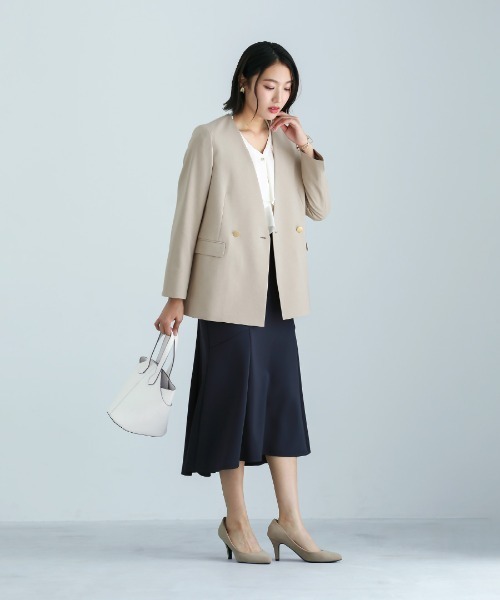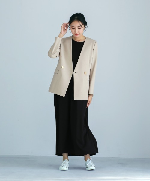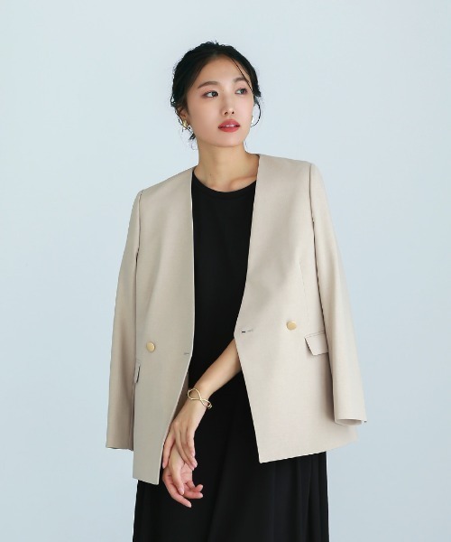 商品名:【 洗える 】 ツイルノーカラーダブルジャケット
