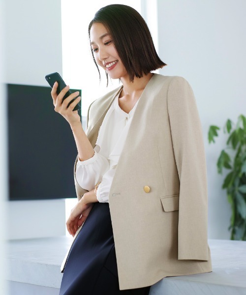 セレモニースーツ スーツ 「 洗える 」 ツイルノーカラーダブルジャケット レディース